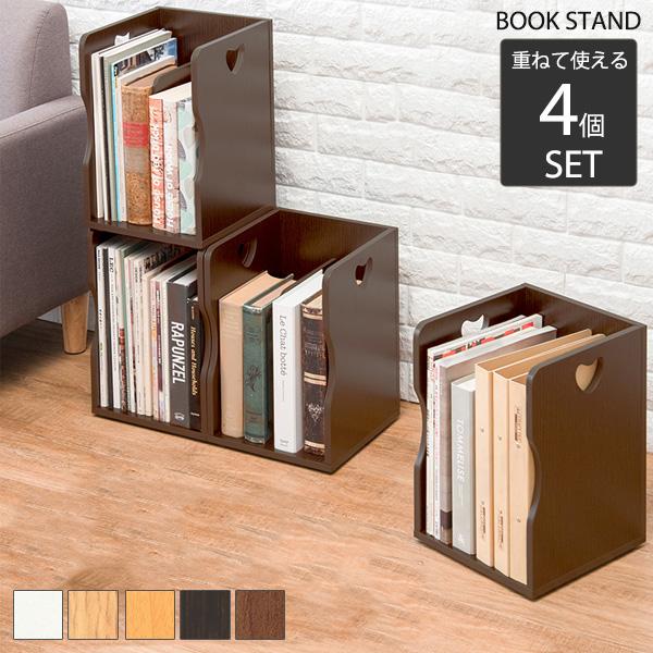 重ねて使える ブックスタンド 4個セット 木製 おしゃれ 本棚 スタッキング 積み重ね 本立て 収納 ファイルラック ファイルスタンド 卓上 2段 販売 N1